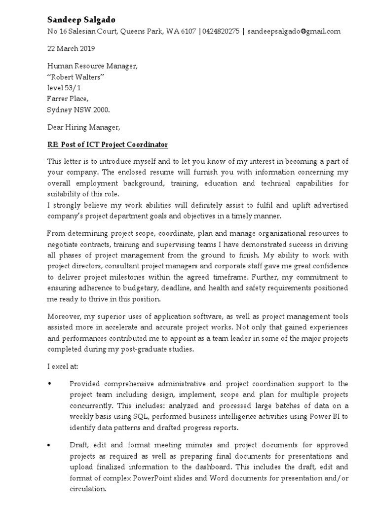 By keeping your tone professional and detailing specific and relevant experience, your cover letter will my analytical, coordination, administration, professionalism, tact, and coachable skills all make me the most suitable candidate for the project. I have recently seen your advert for a project coordinator and i would like to apply for this role. I started working as a project coordinator at rc infotech soon after i finished my summer. In the same way that you might reference resume samples, the following project coordinator cover letter example will help you to write a cover letter that best highlights your experience and. Within time, i know that i would be a vital part of the team and that my skills will be found to be beneficial.